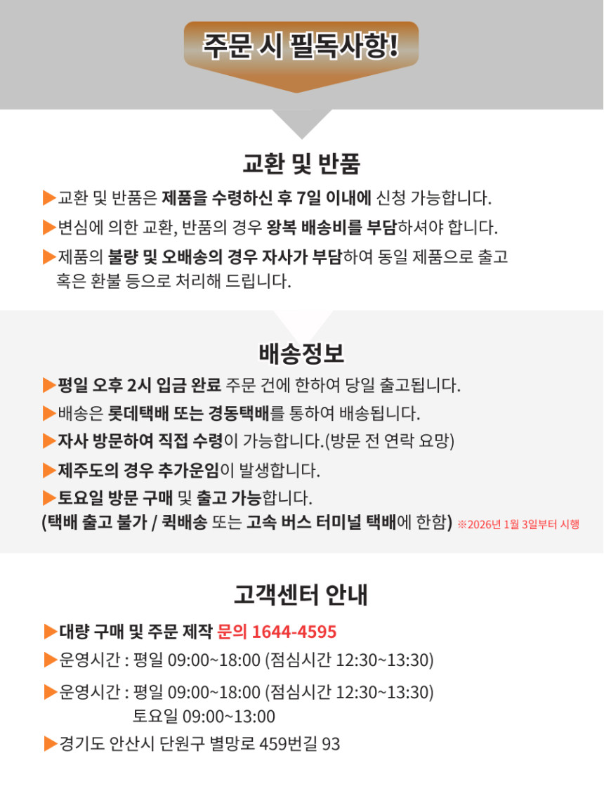 [반품규정] ‘전자상거래에 의한 소비자 관한 법률’에 의거하여 반품기간 이내에 구매자가 반품을 요청할 경우 판매자는 구매자의 반품을 인정하고 받아 들어야 합니다.